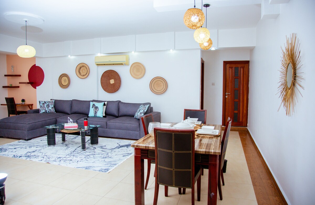Msindi公寓位於一棟名為Uhuru Height的大型建築內,是一個特別的地方。 這棟房子真的很酷,因為它有4個房間,包括一個舒適的座位室,您可以在這裡放鬆身心。 還有開放式廚房和用餐區域。 我們的公寓位於14樓,相當高! 但別擔心,有電梯。 大樓內有一個遊泳池,您可以在那裡嬉戲享受美好時光。 還有一個健身房,您可以在這裡鍛煉並保持健康。