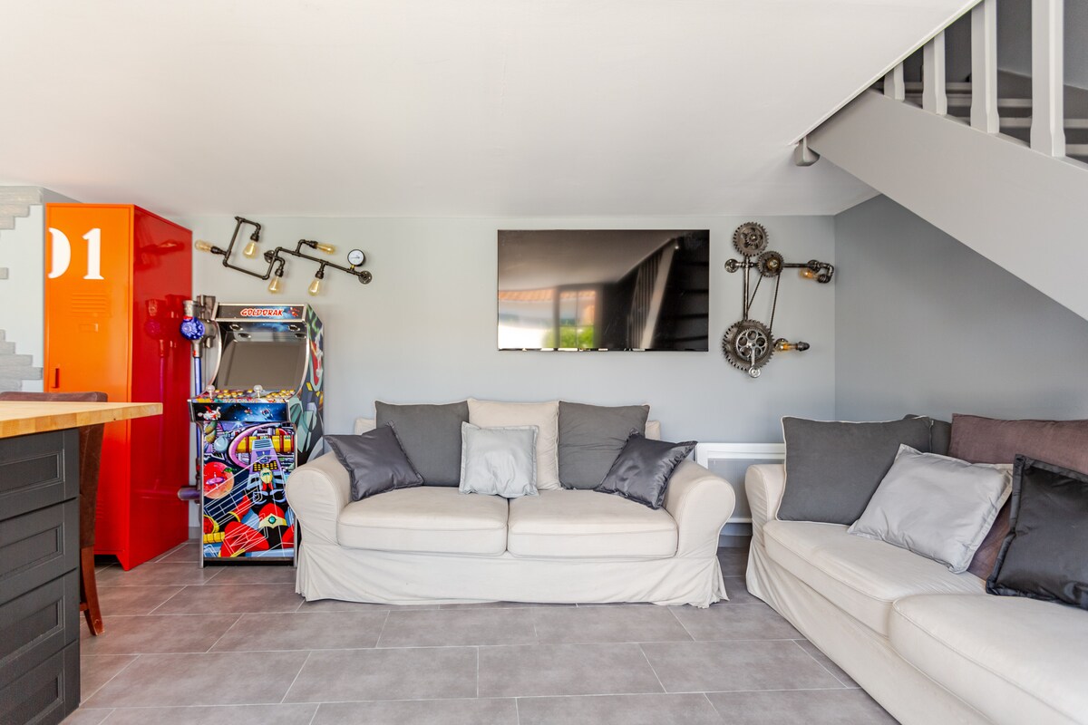 25 平方公尺的單間公寓,夾層有一間 13 平方公尺的臥室。13 平方公尺的露台。 位於安靜舒適的區域,靠近所有商店:麵包店、肉店、煙草店、藥店等。距離家樂福超市 200 公尺。 從拉羅謝爾開車約10分鐘即可抵達村莊,從萊德島開車約15分鐘即可抵達高速公路。 開車 15 分鐘即可抵達機場和火車站。