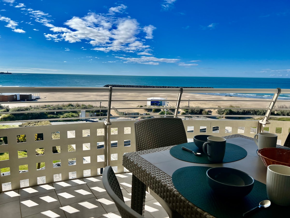 2025年夏季,公寓將配有空調! Apartment Cap d 'Agde 32平方公尺非凡的海景,直達大海螺的頁面,不容忽視。 15平方公尺的大露臺、日光浴、桌椅、雨傘。 私人停車場 2間客房+小木屋,理想的家庭4人。 1間配有大牀( 160公分)和衣櫃的獨立臥室, 1間配有兩張上下舖的小木屋, 翻新、設備精良的3樓,配有電梯。東南曝光。 非常平靜,符合海浪的節奏……
