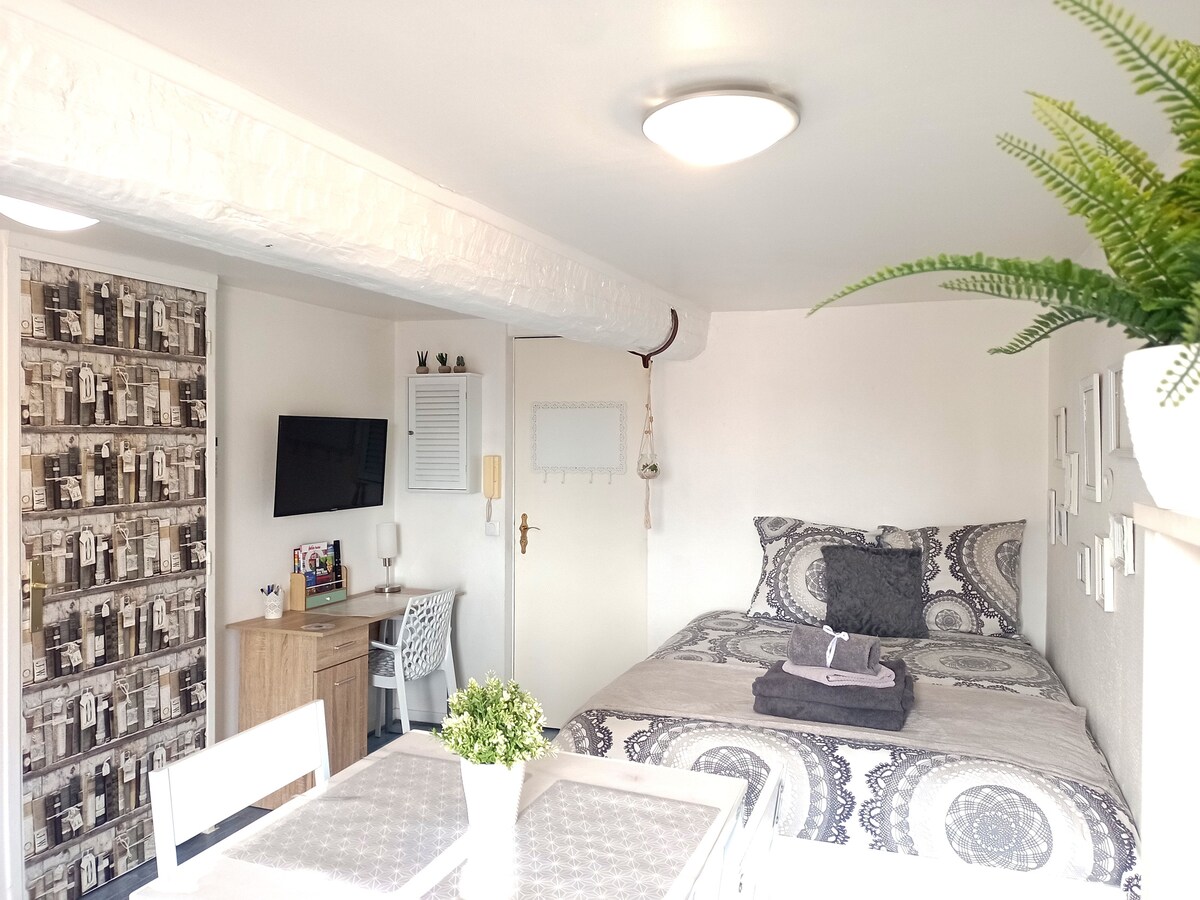 30 平方公尺的單間公寓,位於一棟大樓的一樓,俯瞰小庭院,靠近市中心入口的聖路易廣場。距離商店、市場、餐廳僅幾步之遙。 全新翻修,配備齊全,舒適,包括一間客廳、一張雙人床(160x200)、一個設備齊全的廚房和一個帶廁所的浴室(和洗衣機)。夾層可容納兩張單人床。