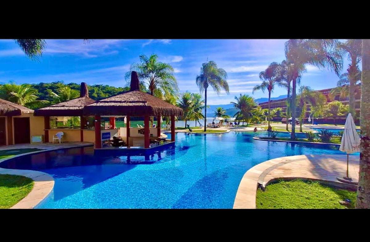 美妙的門禁公寓,配有24小時保安、裝潢精美的花園公寓、兩間套房、配備所有餐具的美式廚房。 Ampla客廳配有電視和家庭劇院、WiFi、帶桌子的舒適陽臺,您和您的家人可以在那裡享用美食,面向美麗的花園和水鏡! 有遮蔽的車庫可供一輛車使用,另一個停車位可供另一輛車使用! 網球場和運動場! 美妙的泳池組和私人海灘,形成令人驚嘆的水上泳池和「溫暖」的海灘泳池套裝,沒有海浪和淺水深! 該建築羣還有巴西最好的碼頭之一,供您拯救您的船! Marina Costabella除了擁有高達80英尺的船隻的超級設備外,還是南美洲第一個獲得環境控制碼頭的藍旗海豹碼頭的碼頭! 異國魚類、海龜和其他海洋動物在船上遊泳! !