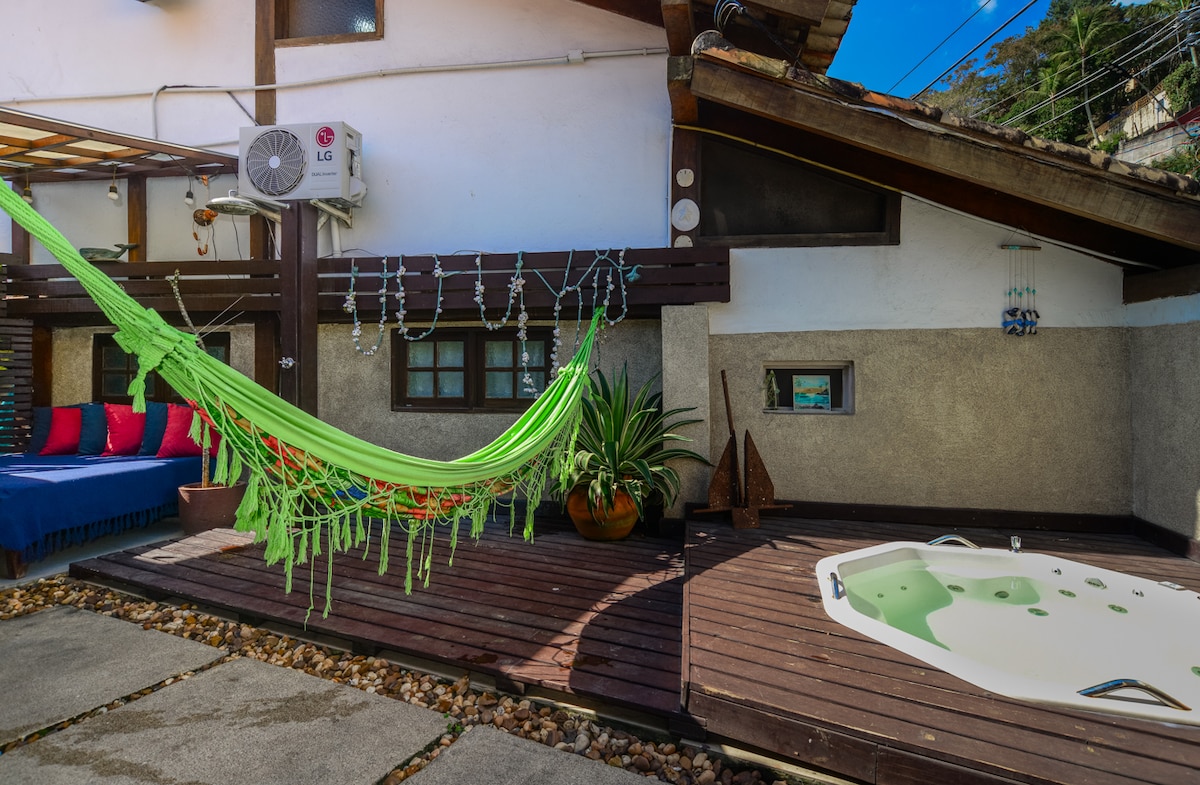 Charming loft,standing in the sand on one of the most beautiful and trendy beaches of Ilhabela. Carefully equipped to offer a comfortable and unforgettable stay,it has air conditioning,ceiling fan,electric shower with stall,refrigerator,sink, microwave, electric oven, coffee machine, and other accessories. Double sofa-bed, single bed, and two extra inflatable double mattresses. Outside we have a deck on the sand in front of the sea, a shower, a hammock swing under a treetop, tables, and benches.