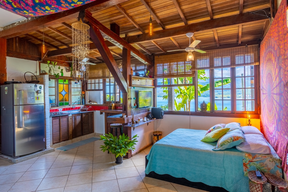 歡迎來到我們的小屋 - 這是一座與自然和諧相處的美麗建築,裝飾充滿魅力和舒適。位於伊爾哈貝拉島南部,距離庫拉爾海灘3公里的封閉式公寓,從渡輪出發,有鋪設的通道。與大西洋森林融為一體,所有房間均可俯瞰大海。非常適合1對夫婦入住,但最多可容納4人。光纖Wi-Fi,以及4G的可能性,適合完美的家庭辦公室。小屋和車庫區域有圍欄,以確保您的寵物安全。