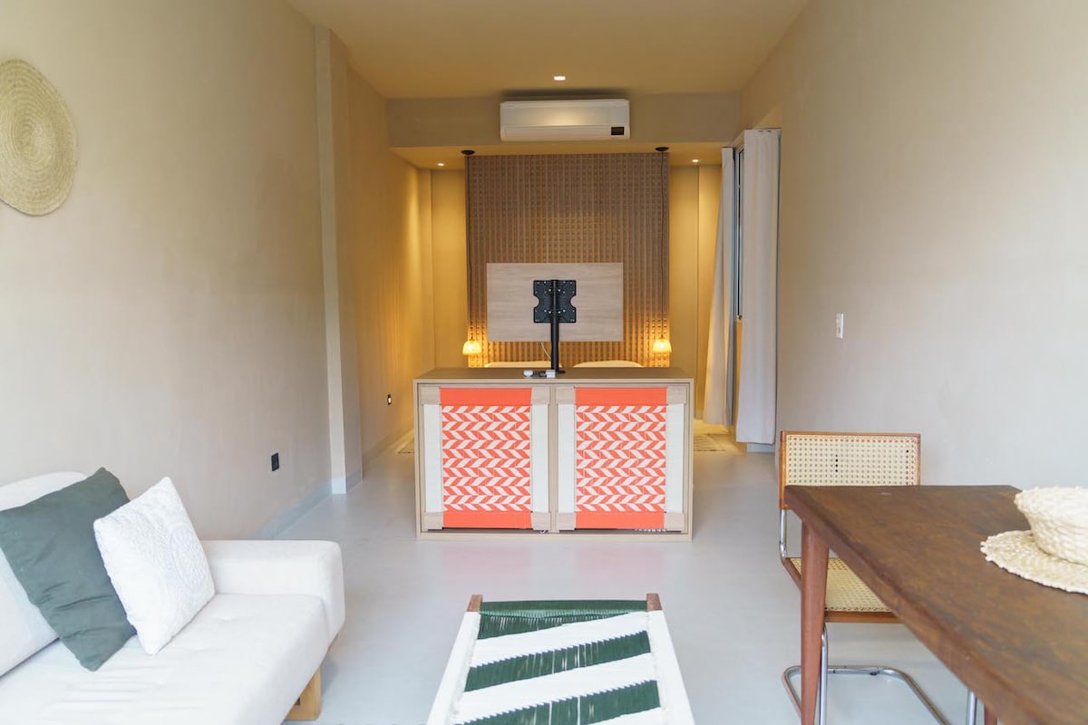 超級奢華,裝潢精良。 如果您想尋找精緻的假期,這裡就是! 裝飾和細節,包括這片綠洲中的原創藝術品,提供5星級的感覺。 iPad可操作108吋螢幕和娛樂中心、冷氣和燈光氛圍。 精緻的Trousseau棉質毛巾和牀上用品完善了體驗。 海灘、公共交通、超市、藥店、LGBT +酒吧和餐廳都在門口。 密碼鎖入口和24小時監視器提供寧靜、隱私和安全。