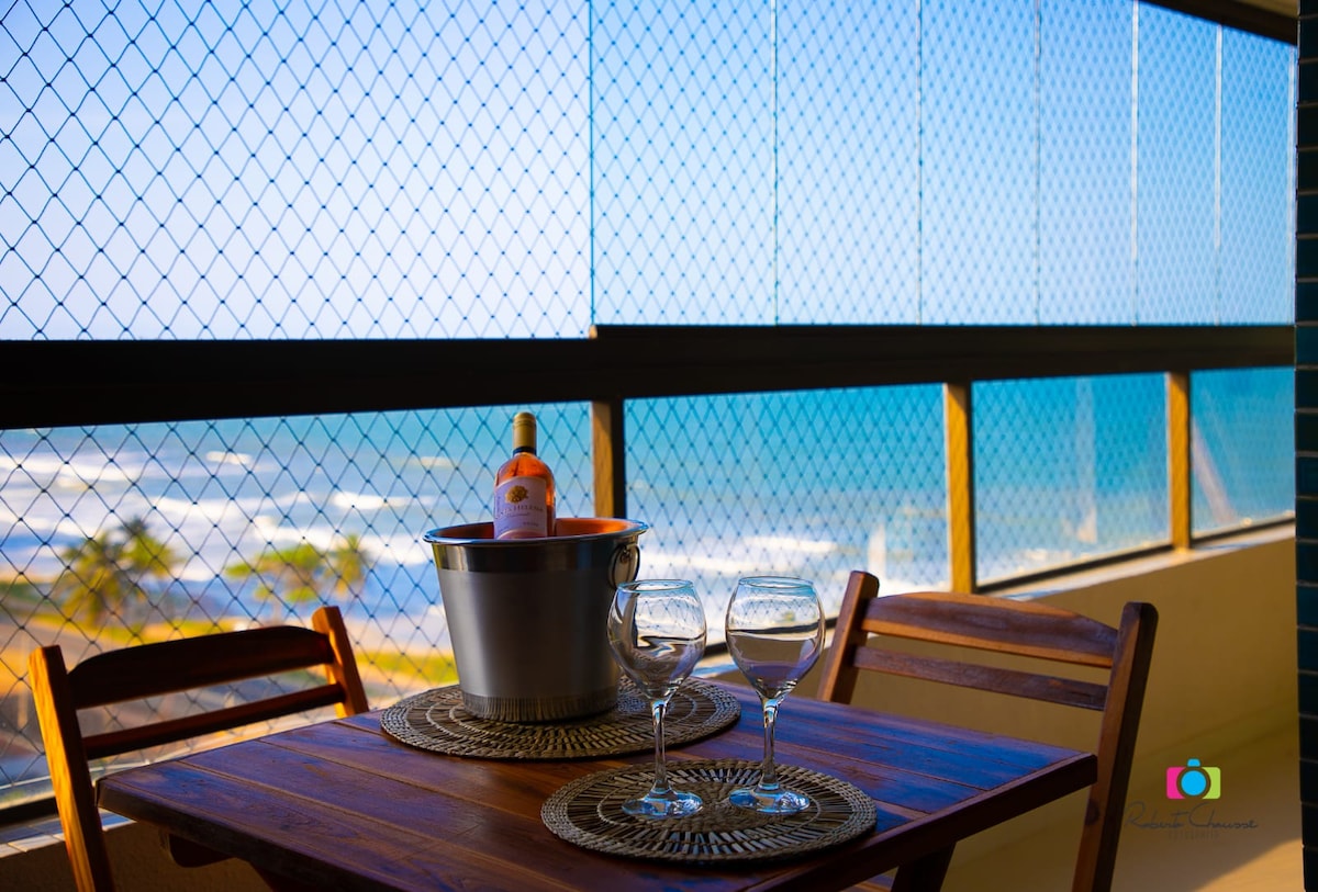 Praia dos Milionários的公寓,正面海景! 有2間臥室、所有房間均設有冷氣、Wi-Fi、大客廳、設備齊全的廚房、俯瞰大海的陽台、2間浴室(社交和套房)和一個停車位。 海景,只需過馬路! 公寓配有24小時保安、無邊際泳池、完整的休閒區和電梯。 在巴伊亞海岸的住宿,舒適、實用和令人難忘的視覺效果。