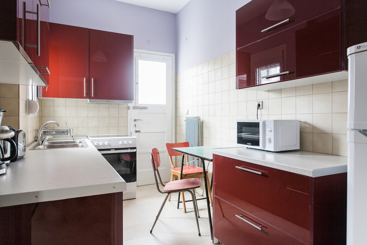 迷人的 1950 年代頂樓公寓,距離 Akropolis 2.5 公里,步行僅 2 分鐘即可抵達 Megaro Mousikis 地鐵站。公寓於2017年全面翻修,特色包括: -臥室和休息室有空調 -大型陽台,有植物(享用一杯葡萄酒的好地方!) -高速WiFi -臥室(陽台) -現代廚房(陽臺) -現代化浴室 -寬敞的休息室(配有大型單人沙發床)