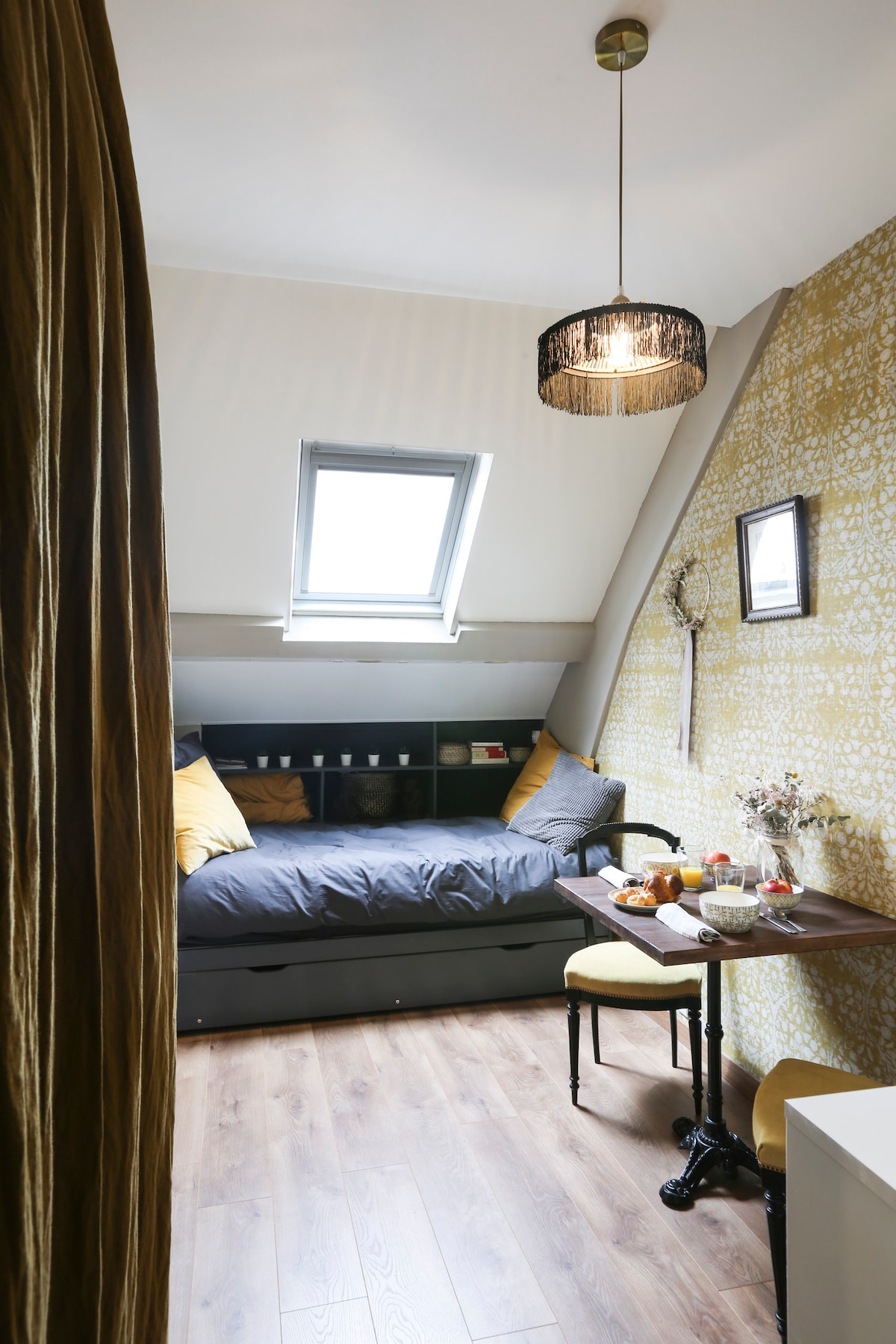 位 於歷史中心,距離法學院霍霍赫廣場( Place du Parlement ) 100公尺 15平方米的老式「de bon」臥室(第19區) 輕鬆、真實的溫暖氛圍。 優 點位於市中心。 非常適合探索雷恩 明亮、安靜。 靠近地鐵 設備齊全, 適合1人 很高興知道四 樓沒有電梯。 不推薦使用行李 可供1人/2人使用的折疊牀( 2張可容納1人的牀)