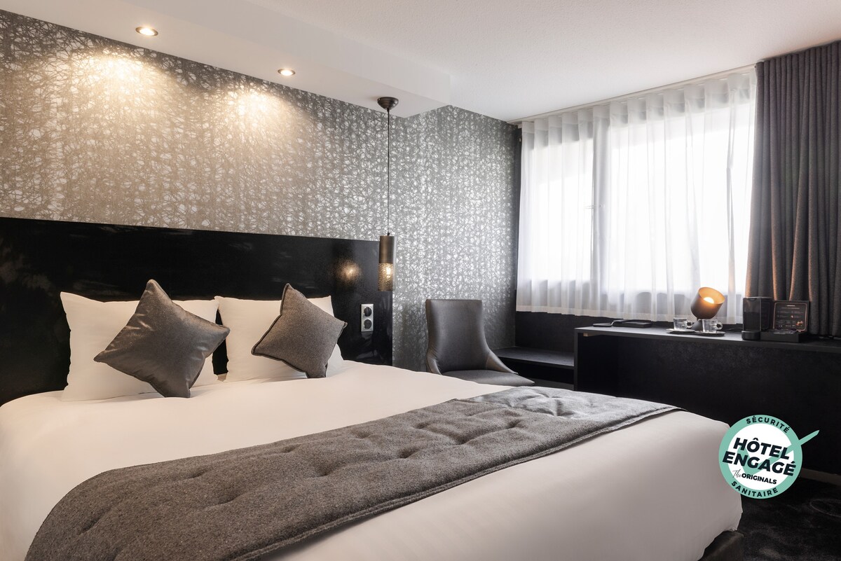 我們的「高級」客房可俯瞰Chateaubriand廣場、城堡或飯店庭院,並設有帶淋浴間或浴缸的獨立浴室。 最近翻修過,配有一張標準雙人牀或兩張單人牀。 平均面積26平方公尺