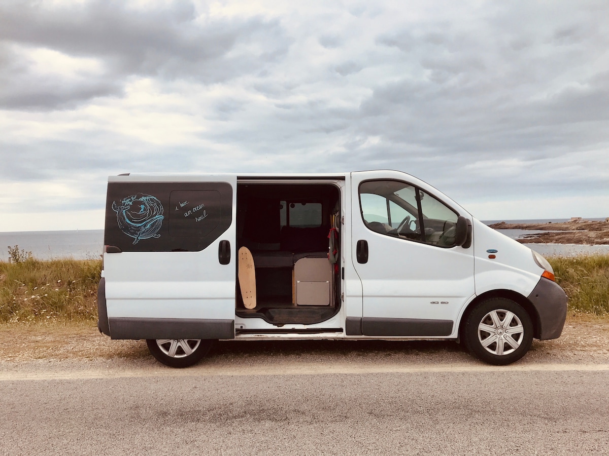 一輛經過改造的廂型車前往您夢寐以求的地方。 對於希望快速度假的人來說,簡單舒適。 不必走得太遠。 牀墊非常舒適,因為它是全新的和合適的。 牀是1m75 請在預訂前與我聯絡。 也感謝您帶走您的牀單-否則它們是€ 5