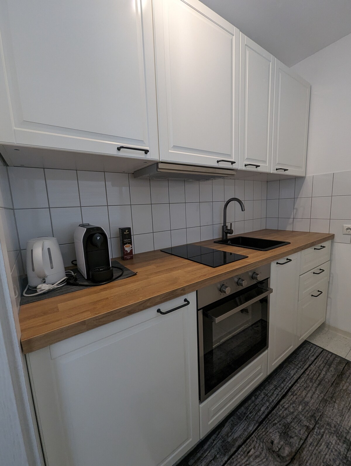 Die Wohnung befindet sich im 2. Stock (ohne Aufzug) in einer gepflegten Wohnanlage und ist zur ruhigen Westseite (Innenhof) ausgerichtet. Voll möbliert und sofort bezugsfertig. Ausstattung: Küche mit Mikrowelle, Kühlschrank und Herd Esstisch mit Stühlen Boxspringbett (140x200) Großer Kleiderschrank Badezimmer mit Badewanne Fernseher Waschmaschine im Haus (Münzbetrieb). Einkaufsmöglichkeiten und öffentliche Verkehrsmittel in wenigen Minuten erreichbar.