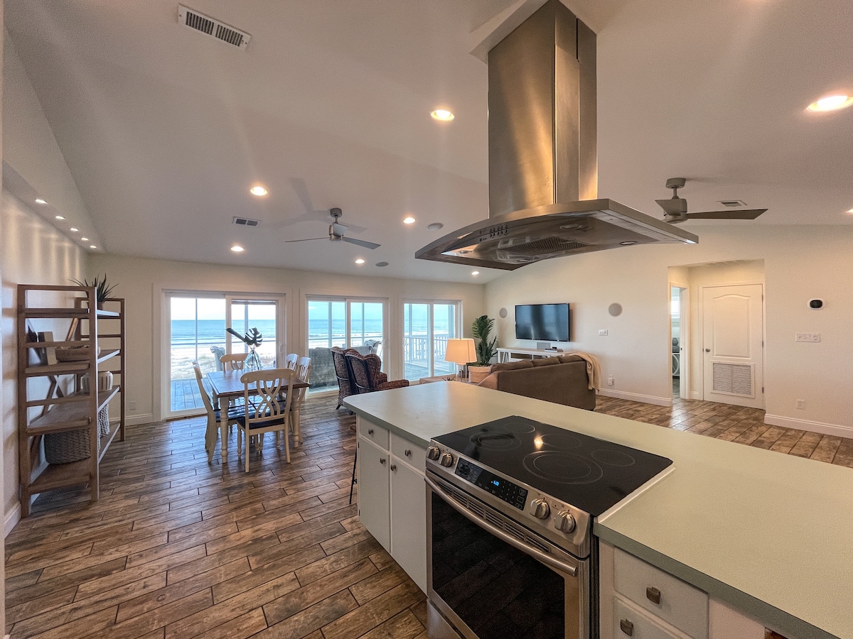 BEACH EQUIPMENT/GEAR INCLUDED - Chairs, Boogie Boards, Sand toys, etc. This is a 3-bedroom, 2-bathroom open-concept home situated right on the beach. Totally renovated down to the studs, this home feels brand new, with comfortable furnishings & endless beach views. With a master bedroom showcasing a king-size bed, a second bedroom with a queen-sized bed, and a third bedroom with a full-over-queen customer bunk bed, and even has a full trundle under.