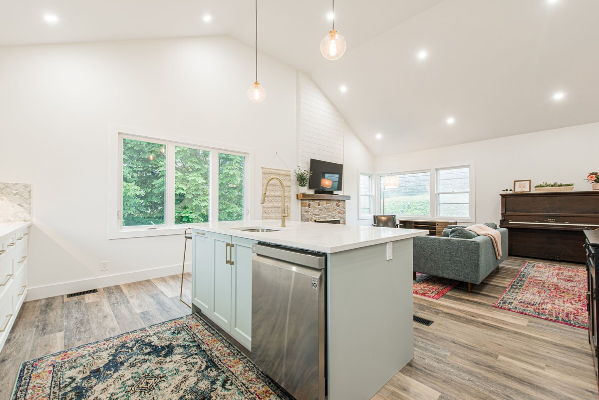 歡迎來到Edgewater。我們的花園套房是一個完全獨立、獨立的套房。房客有自己的獨立入口。 俯瞰花園和湖泊,您可以享受壯觀的日出和月景。聽潛鳥在湖上互相尋找時的叫聲。 套房設有舒適的起居室、餐桌和設備齊全的小廚房(烤麵包機、微波爐、咖啡機、水壺)(沒有烹飪設備)。 客廳外有一間舒適的臥室和獨立浴室。