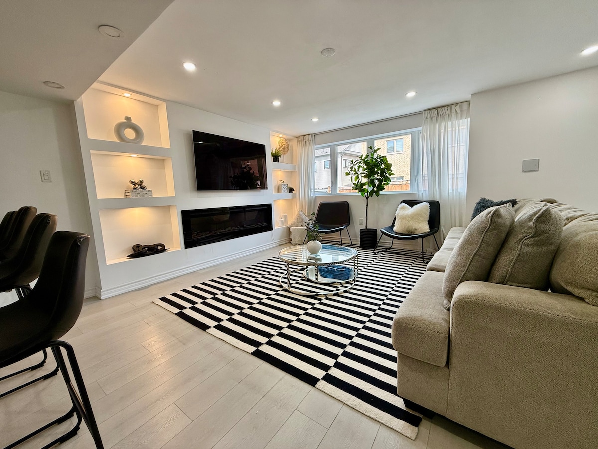 Enjoy the glamour of this spacious, stylish, worry free, upscale place. It is brand new and located in the Heart of Richmond Hill, walking distance from David Dunlap Observatory Park, Plazas, Malls, Schools, Restaurants and Supermarkets. Close To Highway And Go Station, Viva, Yrt. Separate entrance and all inclusive with 1 queen bed, 1 double Sofabed if more than 2 guests, 65in smart TV, high speed wifi. Micro oven, Fridge, K-cup coffee machine, full bathroom, patio sittings, 1-2 free parking