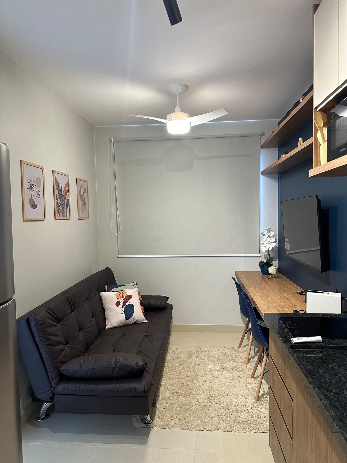 Studio c linda vista, ar condicionado e sofá-cama