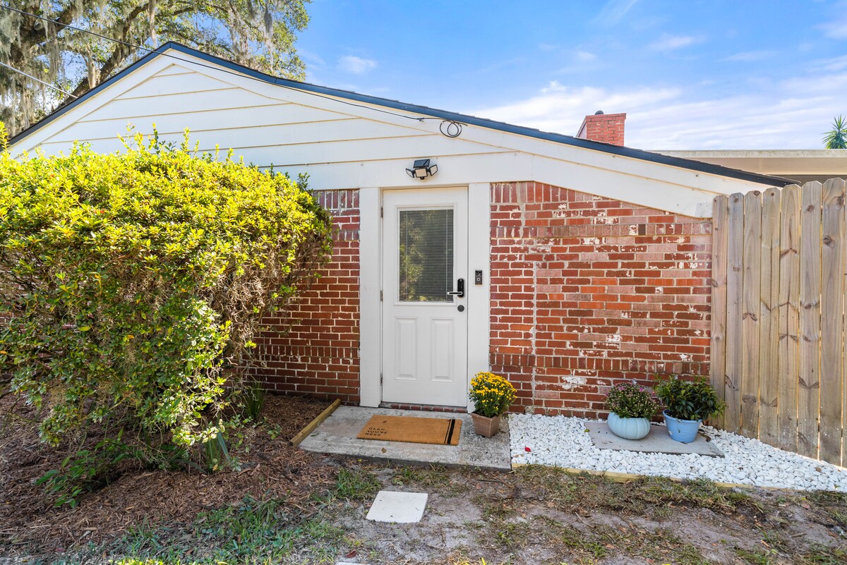 可愛、乾淨的高效公寓,位於一個更大的房源內。完全獨立,有獨立入口大門。豪華的乙烯基「木質」地板、記憶泡綿床墊。電器包括宿舍冰箱/冷凍庫、烤麵包機、微波爐、燃燒器、咖啡壺。有很多儲物空間和一個大衣櫃。距離體育場和市中心僅4英里。距離梅奧診所10英里,距離海灘13英里。位於市中心-非常適合參加傑克遜維爾地區的音樂會、節日和其他活動!