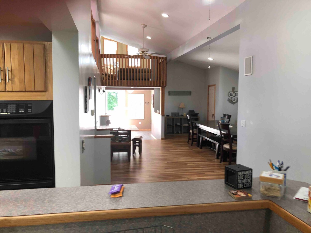 在這個獨特而寧靜的度假勝地放鬆身心。 戶外天堂! 2間臥室和1間臥室閣樓加上拉出式標準雙人沙發,提供充足的空間! 大教堂天花板上到處都是鬆樹!距離公共船舶發射場和美麗的海灘0.3英裏,所有運動沙灘底部長湖。 很棒的釣魚!靠近步行或四輪車的步道。附近有2家酒莊、一個小啤酒廠和許多很棒的餐廳/酒吧。 戶外營火圈和烤架。 這裡是北邊的密歇根州!