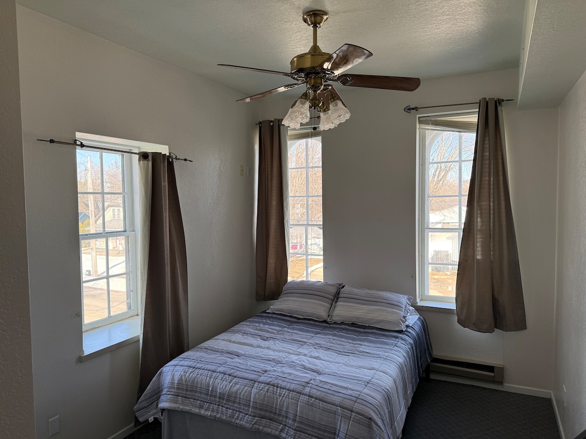 位於風景優美的愛荷華州東北部,周圍有河流、森林和數千英畝的公共土地通道。 這個區域非常適合狩獵、釣魚、釣魚、皮劃艇、徒步旅行、觀光和許多其他活動。 這個房間經過改造,配有全尺寸冰箱、烤箱、廚房水槽、微波爐、咖啡機和小廚房桌子。 配備兩張1.8公尺寬雙人牀、智慧電視、WiFi、淋浴設備,此房間可提供無接觸/自助入住。