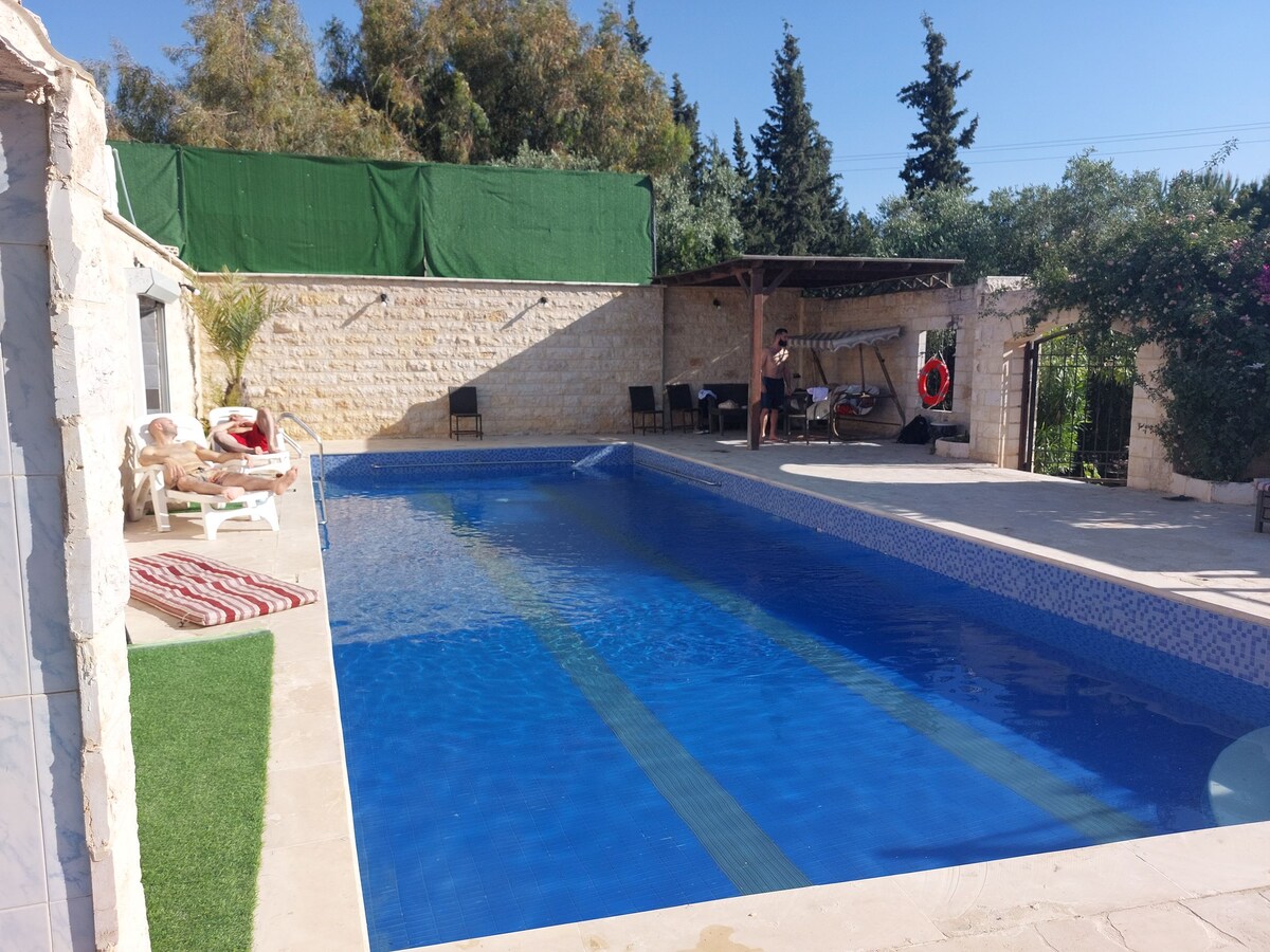 Relax with the whole family at this peaceful place to stay. Reconnect with nature at this unforgettable escape with magical sunset view in the middle of Ajloun forrests and fruit farms but near to main sights and services . 2 min to Ajloun teleferique station. 5 min to Mar-Elias. 8 min to Ajloun Castle. 7min to Panorama Ajloun Lovely Restaurant. 12 min to Ajloun Reserve attractive restaurant. 9 min to Ajloun Down town.