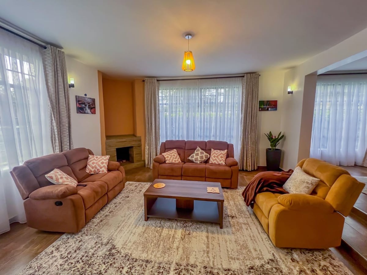 Your Dream Escape awaits at Nanyuki Nyumbani - a hidden paradise close to Aberdare Prestige Cottages! ▶︎ 3-Bedroom Villa: Our airy and spacious villa is your home away from home. ▶︎ One Acre of Lush Greenery: With 24-hour security, reconnect with nature and unwind at our intimate forest retreat. ▶︎ Fireside Bliss: Gather your loved ones and cozy up around our outdoor and indoor fireplaces. Karibu Nyumbani - Welcome Home!