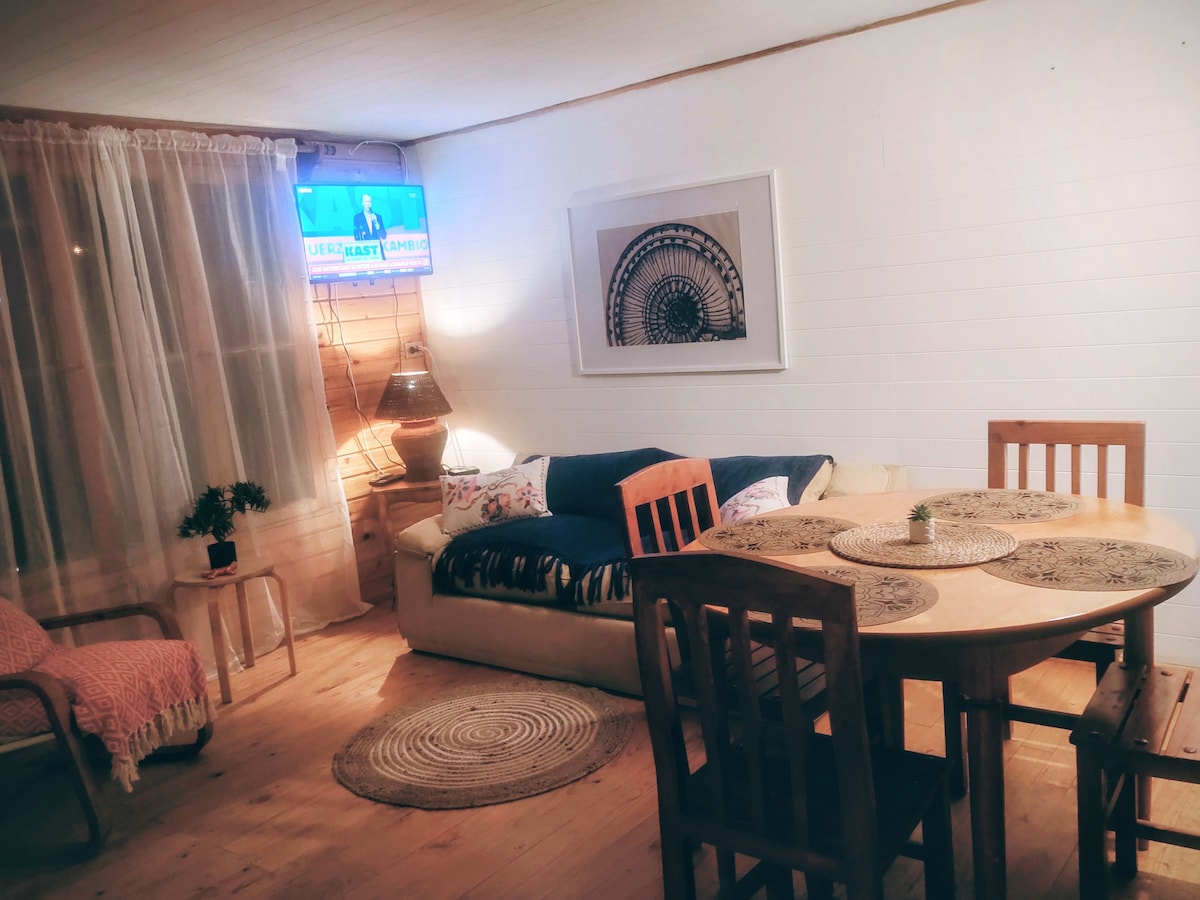 30 平方公尺的單間公寓。配備雙人床、海景餐廳、獨立浴室、毛巾,可容納 2 人。廚房配有冰箱、電爐、電烤箱、餐具和刀具。我們距離海灘500公尺,步行幾分鐘即可抵達碼頭。我們也靠近各種餐廳和商店。歡迎來到彭塔德喬羅斯 (Punta de Choros),享受寧靜與美麗的風景、動植物。