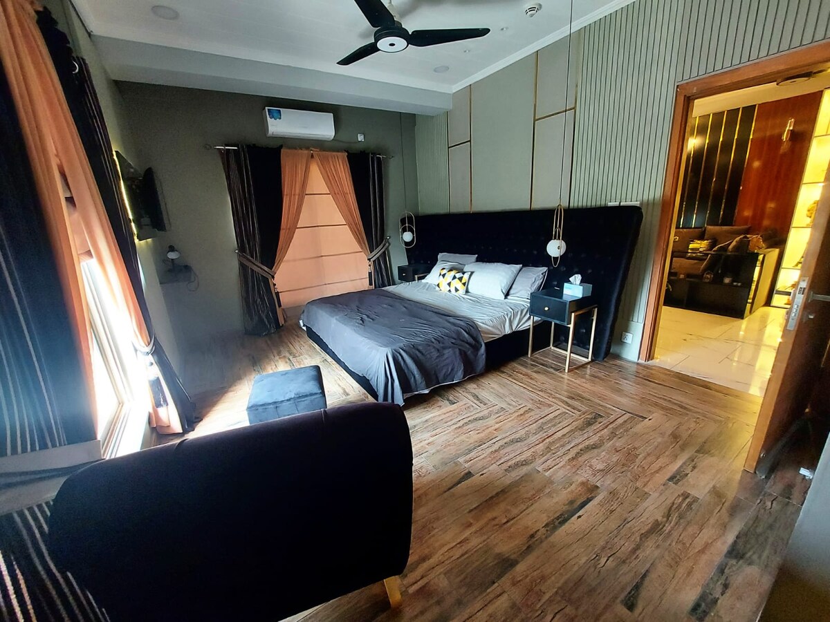 Experience modern, dark-toned elegance in the heart of F-11 Markaz, Islamabad. The Slate Suite is a refined one-bedroom apartment designed for guests who appreciate clean aesthetics, calm surroundings, and a prime central location. Ideal for professionals, couples, and solo travelers, this thoughtfully curated space offers the perfect balance between city convenience and private comfort.