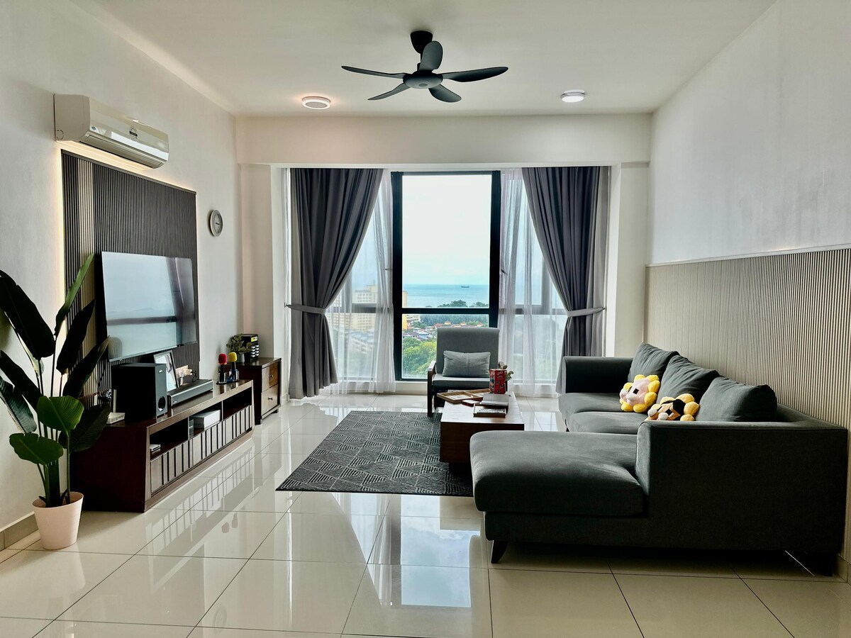 *檳城的最佳位置,新關仔角,第一旅遊目的地 *一個雙層角落單位 *令人驚嘆的高樓層日出海景 *日本設計師設定,配備全套設施 *智慧電視 * 100Mbps WIFI *在臥室、客廳和餐廳欣賞令人驚嘆的日出 *周圍有酒店、購物中心和各種當地餐廳 *免費1個室內停車場 *設施包括室內泳池、健身室和天空休息室 *放鬆的海濱漫步