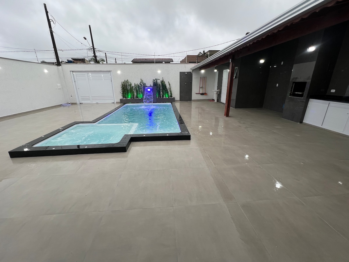 ☀️🏡🏖 適合尋找舒適休閒住宅的您! 獨立、私人住🏡🏊🏻♀️宅,配有瀑布和水療按摩池。 房源有 1 間臥室、1 間浴室、客廳、廚房和帶吊床的陽台、泳池和海灘淋浴。 最多可容納 5 人。 歡迎攜帶寵物 🐶🐯 🏖 位於聖保羅州伊塔尼亞恩的摩洛哥區,這是一個安靜的街區,靠近商店,距離海灘 900 公尺,距離南海岸最受歡迎的旅遊景點漁業平台 2 公里。 來享受一個美好的週末吧! ☀️🏖