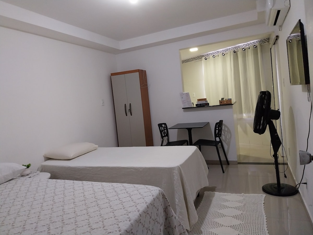 Abrace a simplicidade neste lugar tranquilo e bem-localizado. Estúdio muito arejado, novo, próximo ao centro, mercado , e hospital . Tudo novinho, roupa de cama, travesseiro e toalha para o casal não precisar carregar muita bagagem. Escada com corrimão e degraus largos.