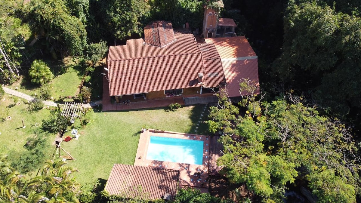 Serrinha do Alambari環境保護區域擁有豐富的野生動物,有很多徒步旅行和瀑布。 從Penedo鎮開車20分鐘即可抵達,地理位置優越,適合參觀Itatia國家公園。 房子可以私密進入河流和房源內的瀑布。 裡面有4間臥室,可通往花園; 4間套房浴室;設備齊全的廚房;配有壁爐和夾層的客廳;配有吊牀和燒烤的室外陽臺