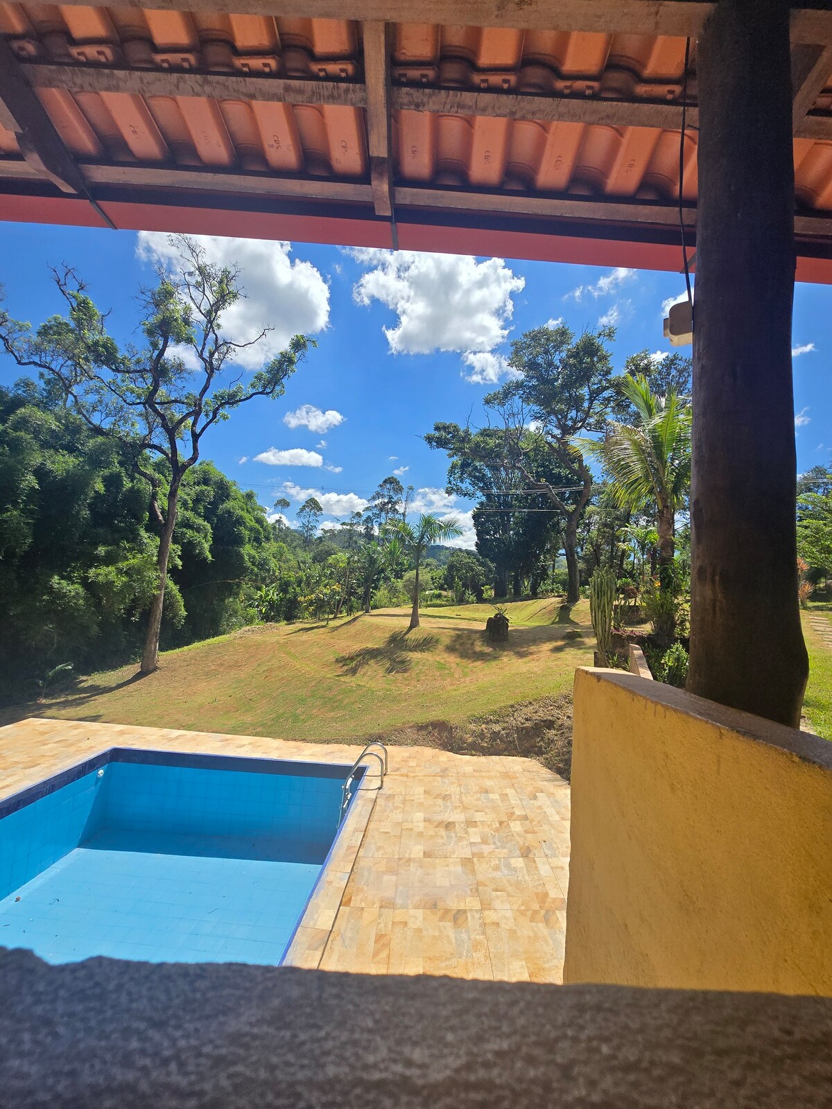 靠近BH的美麗安靜的地方,景觀極佳,花園美麗,有9間客房、撞球桌、50000升成人泳池,配有太陽能加熱器和照明、兒童泳池、桑拿(房客負責燃氣費)、釣魚池、冰箱、燒烤、電視、免費Wi-Fi、鞦韆和休息網、配有Airfryer、烤箱、微波爐、烤箱、工業爐、所有用具的廚房空間、遊樂場,一切都非常乾淨有序,可從BR381快速輕鬆到達。