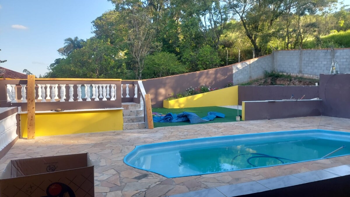 "Casa para lazer e descanso". Para chegar ao sítio, há uma estrada de terra de 7,5 km... Perfeito para aqueles que gostam de fazer trilhas de carros e motos. Afaste-se da cidade e conecte-se com a natureza, longe de qualquer barulho... Aliás, os únicos sons que se ouvem no local são dos passarinhos... A piscina é uma delícia e, ao lado, há uma casa de bonecas para as crianças brincarem!!! O pomar é muito gostoso, com vários tipos de árvores frutíferas!
