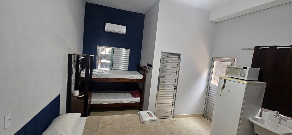 舒適安全的公寓,我們還有另一間額外的房間,可容納3位額外的客人。 非常適合在該地區工作或休閒住宿。它還有一個 24 小時自助服務市場。 非常靠近連接坎皮納斯/索羅卡巴的重要的 Santos Dumont 高速公路。距離維拉科波斯機場 (VCP) 只有 30 分鐘路程。該地點距離舉辦著名的Tomorrowland活動的前田公園僅17分鐘路程。