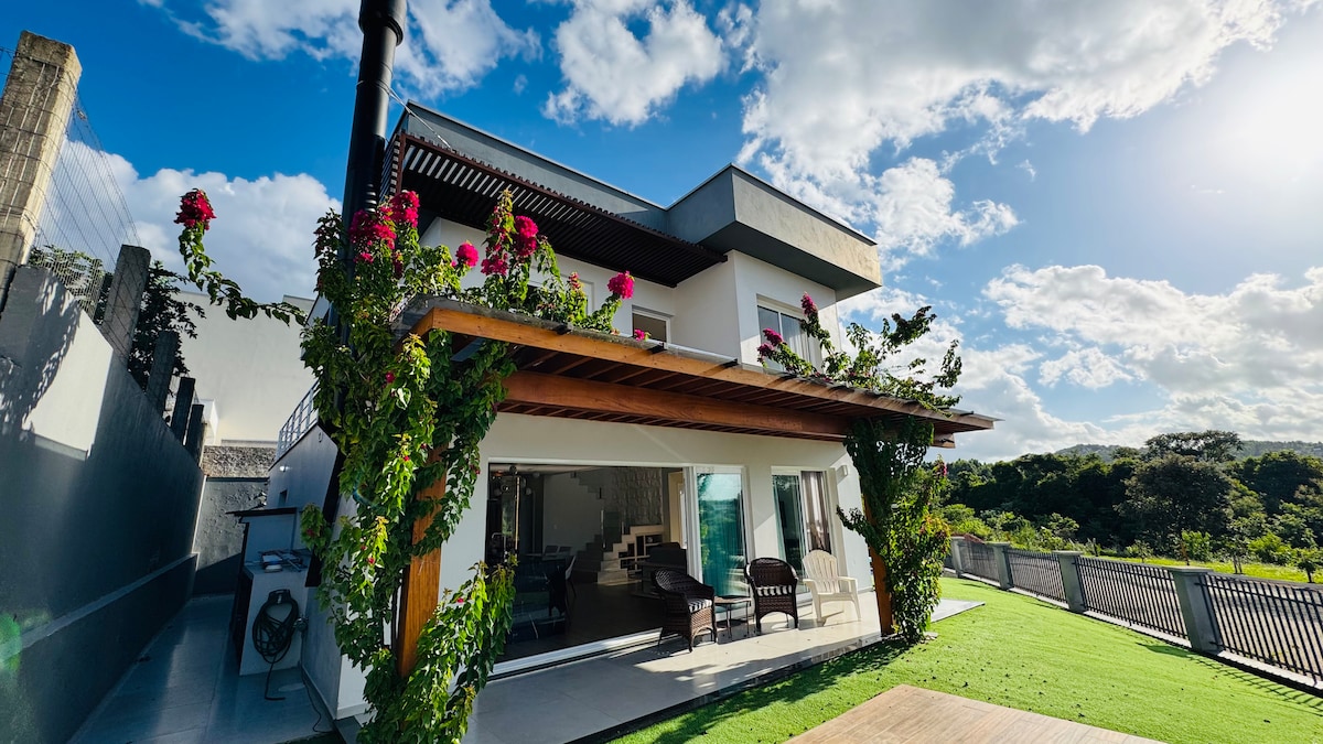 Discover the elegance of this 250m² home in Pé da Serra. With modern architecture, fireplace, barbecue area, and pool, every space blends comfort and style. The master suite and two bedrooms, all with walk-in closets, ensure privacy and sophistication. The fully equipped kitchen is perfect for refined cooking. In a peaceful neighborhood with easy access to markets, bakeries, and pharmacies—luxury meets convenience.