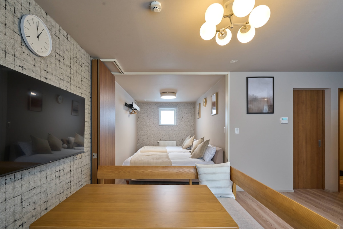 入住这处位于市中心的房源,让家人享受一切近在咫尺的便利。 入住可免费接送至二世谷滑雪场 民宿坐落于俱知安市中心的繁华地段,周边设施一应俱全。距离JR车展仅步行4分钟,同时,距离花园雪场也仅开车8分钟。此外,民宿距离超市和便利店也仅需步行7分钟,购物和日常所需均可轻松满足。 我们的民宿提供舒适的居住空间,每一处细节都经过精心打造。房间内配有全套厨房用品,让您在旅途中也能享受到烹饪的乐趣。特别值得一提的是,我们还为您准备了咖啡机,让您在清晨的第一缕阳光下,享受一杯香浓的咖啡,开启美好的一天。 我们精心挑选了隔音效果良好的建筑材料,确保您在房间内能够远离城市的喧嚣,为每一位客人提供宁静舒适的居住环境。此外,我们还提供了舒适的床铺和柔软的枕头,让您在旅途中也能拥有高质量的睡眠。 在这里,您可以尽情享受,在静谧的环境中放松身心,享受难得的宁静时光。