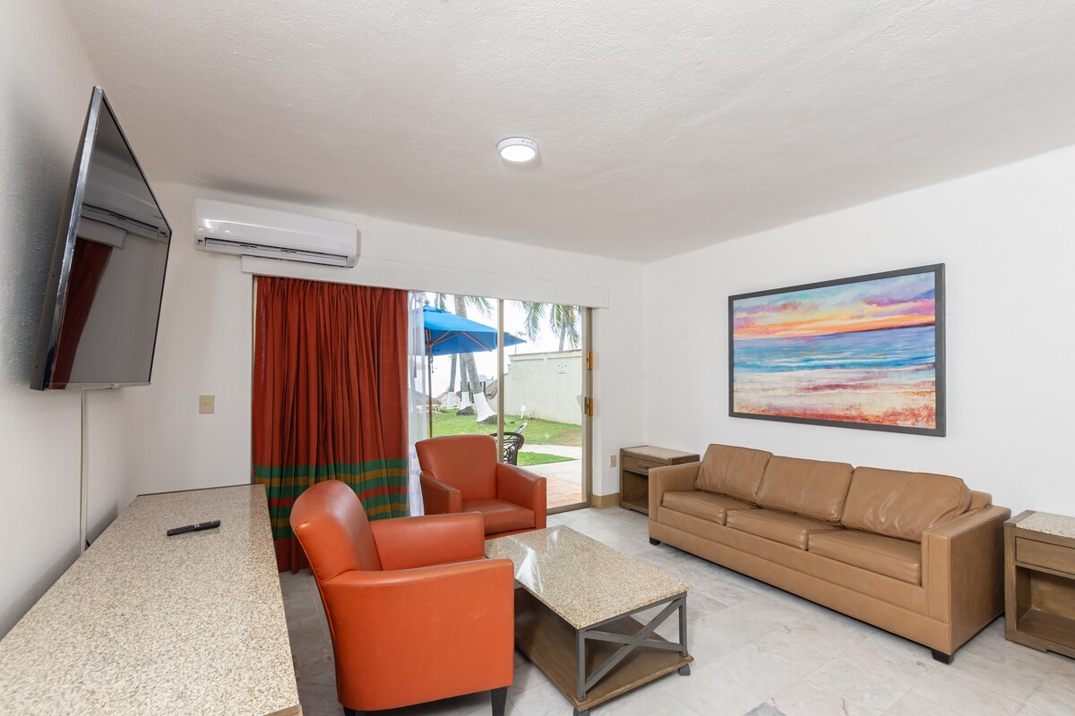 美麗的熱帶環境,距離Zihuatanejo最受歡迎的海灘Playa La Ropa僅兩個街區! Casita Rita 我們的 1 間臥室配有廚房和 2 間平房、Bungalow Encantadora 和 Bungalow del Sol (可單獨出租)位於中央 Palapa 酒吧、餐廳和泳池區域周圍。 所有臥室均配有空調、加大雙人床、豪華寢具、平板電視和美麗的室外淋浴間! 整個度假村免費高速WiFi! 2位成人2位兒童。