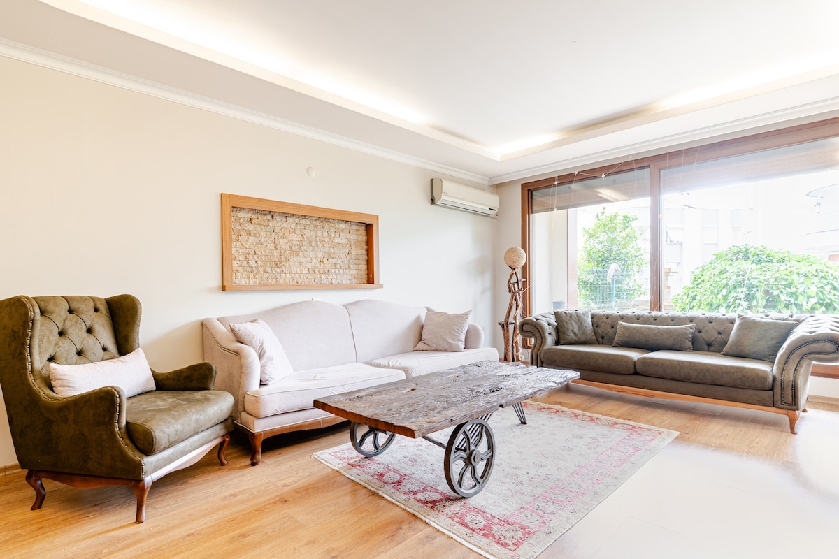 Spacious 220m² apartment with a private 500m² garden and pool in Kusadasi’s safest, most upscale area. 15-min walk to center and beach. 2 bedrooms, 2 living rooms (one with sofa beds), 2 bathrooms (one en-suite with dressing room). Sleeps 6–8. Pet-friendly and wheelchair accessible. Perfect for families or groups seeking comfort, space, and privacy near town and sea.