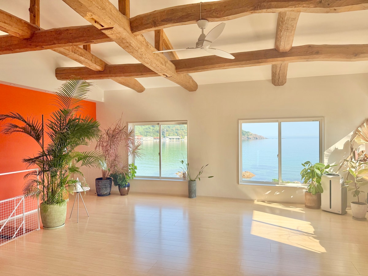 SEABASE Villa at Shimane is a private oceanfront retreat in Shimane Town, for one group per day. It features a spacious living area, 10-seat dining table, sea-breeze terrace, and ocean-view bedroom. Ideal for up to 8 guests—families, friends, or couples—it offers SUP, swimming, fishing, yoga, and stargazing. The kitchen is fully equipped, and amenities include a 65” TV, Wi-Fi, and free parking. Enjoy peaceful seaside time and the luxury of doing nothing.