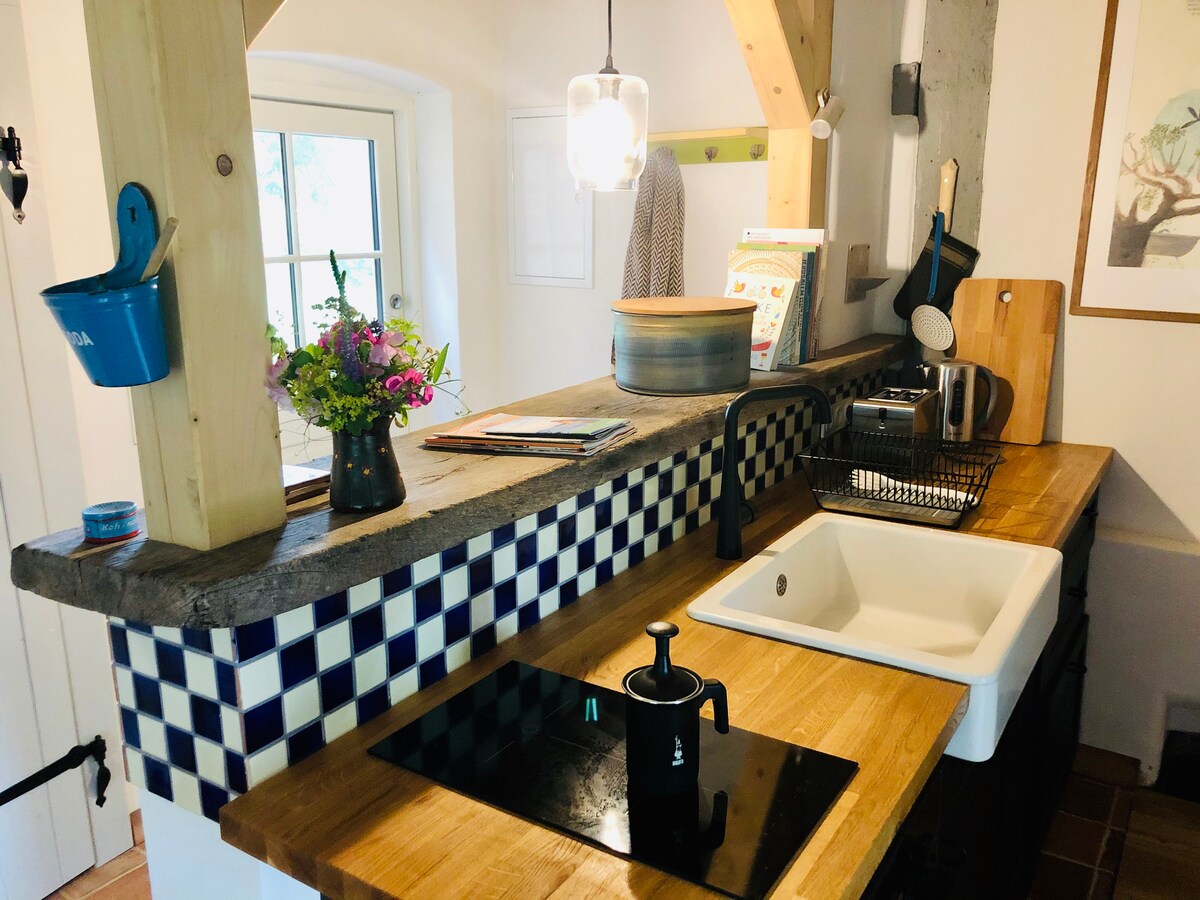 除了舊的老闆外,我們還為我們單獨建造了一個小附屬建築,供朋友和房客使用。 有些是現代風格,但仍然具有過去的魅力。對我們來說似乎很一致,有些事情仍在進行中。 因此,沒有什麼是標準的。我們還沒有考慮過哪些內容,對房客來說,通常可以很快新增。 小屋四周環繞著Ackerkante的天然花園,因此位於一個小型的農業活躍村莊。