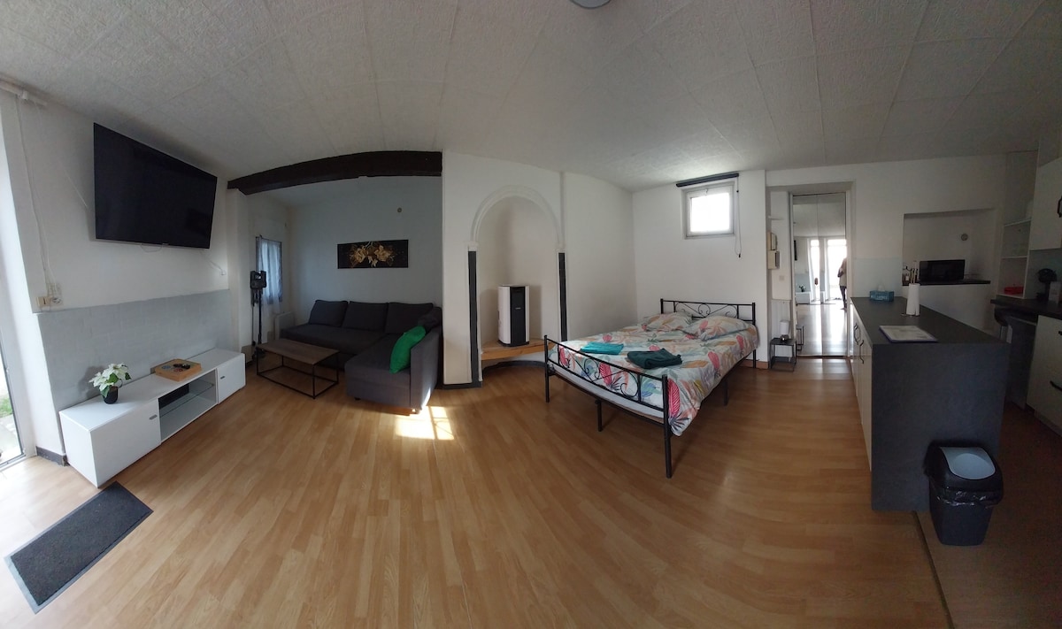 全新且非常舒適的單間公寓,坐落在Ourcq運河和馬恩河畔的一個非常安靜的小村莊,有300名居民。 請注意,對於老年人或行動不便者,請透過樓梯進入房源。 距離戴高樂機場和巴黎迪士尼樂園20分鐘路程。 10分鐘內: -莫克斯(Meaux) - Claye souilly擁有購物區和新的購物長廊(餐廳、酒吧、電影院、保齡球館、激光遊戲) - Jablines休閒基地