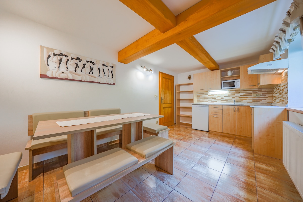 設備齊全的山間公寓。附近有自行車租賃、滑雪纜車、水療中心、餐廳。公寓位於一樓,有一個美麗的橡木露臺。睡在雙人床上,或非常舒適的沙發床上。配有設備齊全的廚房(冰箱、洗碗機、電熱爐、電熱水壺)。淋浴間、廁所。提供Wi-Fi。在大樓內有洗衣機(投幣式洗衣機)、自行車存放處(可上鎖的自行車棚)、滑雪櫃。周圍有許多徒步路線和獨特的自然景觀。