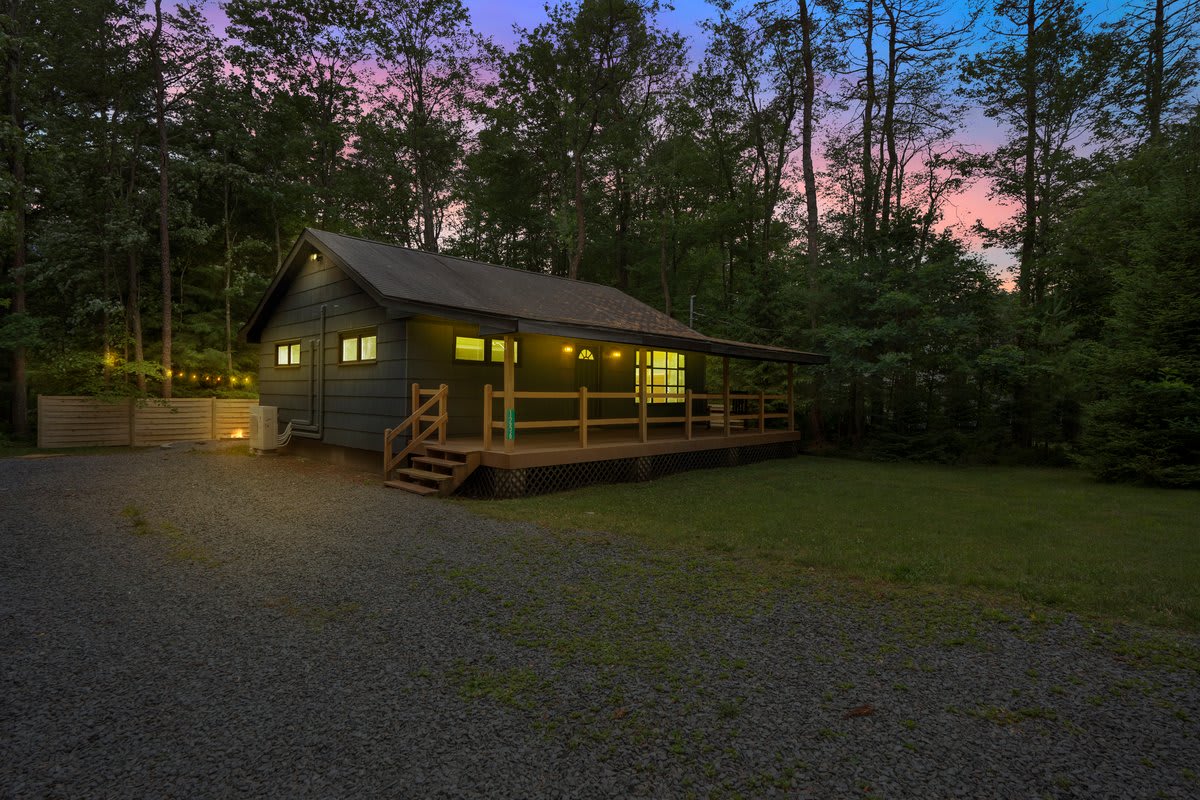 在我們更新的小木屋中與彼此和大自然重新連接。 * 舒適且溫馨 * 按摩室,提供精油 * 溫暖的壁爐和人造熊皮地毯 *加大雙人床臥室 * 按摩浴池 * 裝飾是可選的升級 *徒步旅行從門口開始 *靠近許多當地的波科諾景點 這間小木屋坐落在一個古樸的社區,四周環繞著州立森林,非常適合情侶入住。根據規定,我們必須在入住前48小時登記房客。