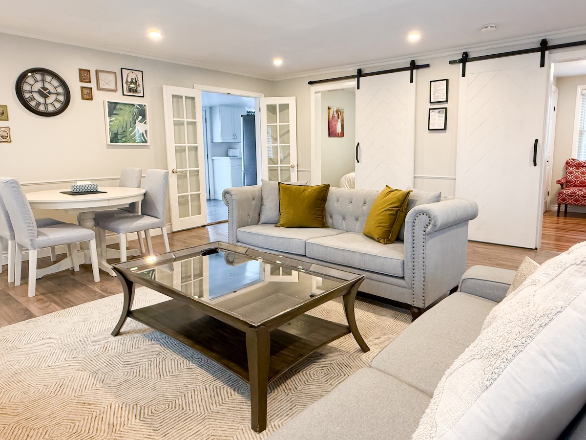 獨立3房公寓• 700平方英尺•距離市中心幾步之遙。 歡迎兒童和狗入住。 現場提供狗和寶寶看護服務。 毛絨加大雙人牀和大螢幕電視休息區。 可為第3位和第4位房客新增日式牀墊或腳輪牀。 兩間舒適的相鄰房間可作為小廚房和額外房間。 大型套房,配有浴缸和淋浴間,以及所有洗漱用品。 迷你冰箱、微波爐、咖啡和茶站。 高速WiFi。私人停車位。 NOTL STR執照號碼105-2021