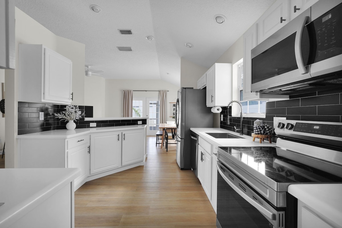 我們的旅居非常適合你和你的摯愛擺脫日常生活、充電、放鬆和重新聯繫。 度假屋的特色: 私人鹹水泳池和花園 水療般的浴室,配有浴缸,清爽的24英寸淋浴間。 所有房間配備智慧電視+ WIFI ,包括浴室。 中心位置,靠近TIAA銀行場、機場、市中心、佛羅裏達劇院、時代聯合PAC。 步行即可抵達當地餐廳和啤酒廠。 到時見!