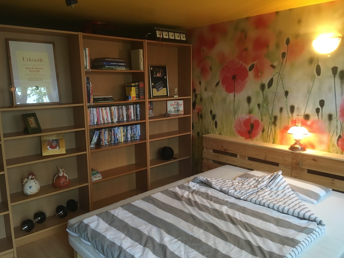 舒適明亮的閣樓公寓,位於寧靜的雙戶型房屋中,靠近森林,位於維恩斯貝格 (Weinsberg)。無論是藝術家、通勤者、組裝人員、徒步旅行者、葡萄酒和短期度假者,無論是單獨還是兩人,這個住宿都是在多樣化的維恩斯貝格山谷 (Weinsberg Valley) 進行所有活動的理想起點。小廚房(臥室外)、獨立浴室和陽台提供了必要的獨立性和隱私。