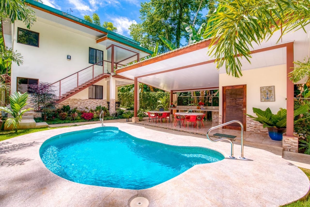 在海灘度過一天後,回到這間安靜寬敞的公寓將是一種樂趣。你會喜歡在吼猴和鳥類的聲音中醒來。 在前廊享用咖啡,同時欣賞美麗的花園。您可能會發現一群吼猴或帽猴,甚至是樹懶。您經常可以聽到海的聲音。 我們有數十棵果樹和一群鴨子在房源周圍漫遊。如果您願意,我們很樂意帶您參觀我們的小農場。