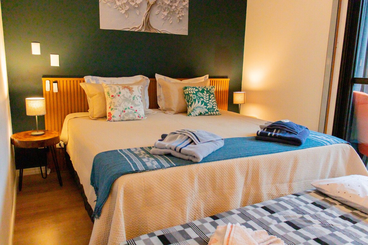 Flat102 是 @flatscj 的特殊單位,設備齊全,可讓您安靜入住。我們位於 Campos do Jordão 心臟地帶的貴族區域,靠近一切。位於商業中心和卡皮瓦里旅遊村之間,方便您前往整個城市。您可以將車停在大樓內,步行15分鐘即可抵達Capivari ,步行15分鐘即可抵達Av Principal ,該大道平坦、安全、樹木繁茂、燈光明亮,有人行道和自行車道。