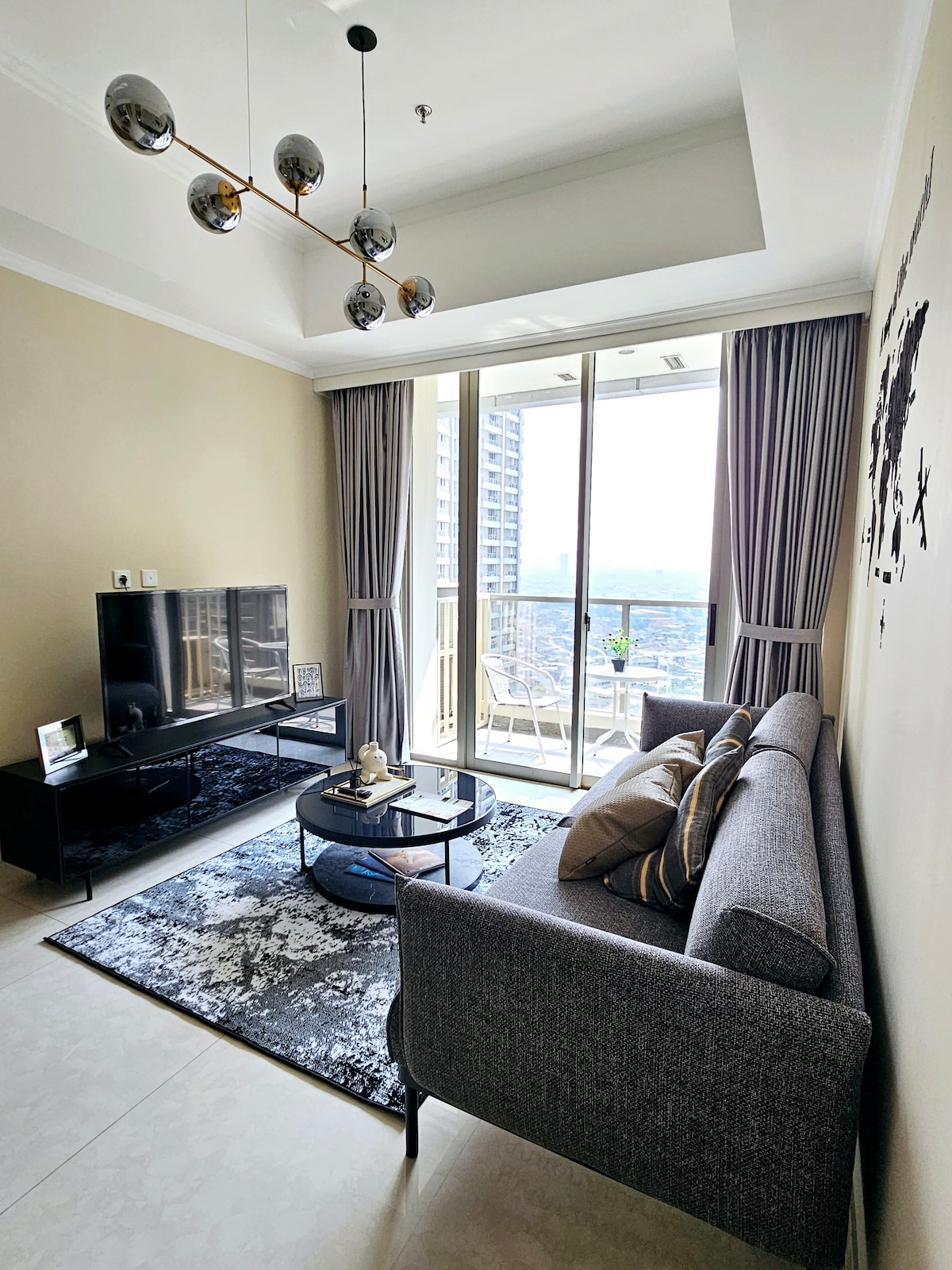 這間房源是一片寧靜的綠洲,簡潔的線條、天然的材質和和諧的色彩調配,營造出一種寧靜的氛圍。這間精心設計的 Airbnb 房源簡單又實用,是遠離城市喧囂的寧靜天堂。 房源直通中央公園購物中心,距離購物、餐飲和娛樂場所僅幾步之遙。無論你是想要購物狂歡,還是想在雅加達水族館散步,一切都近在咫尺。