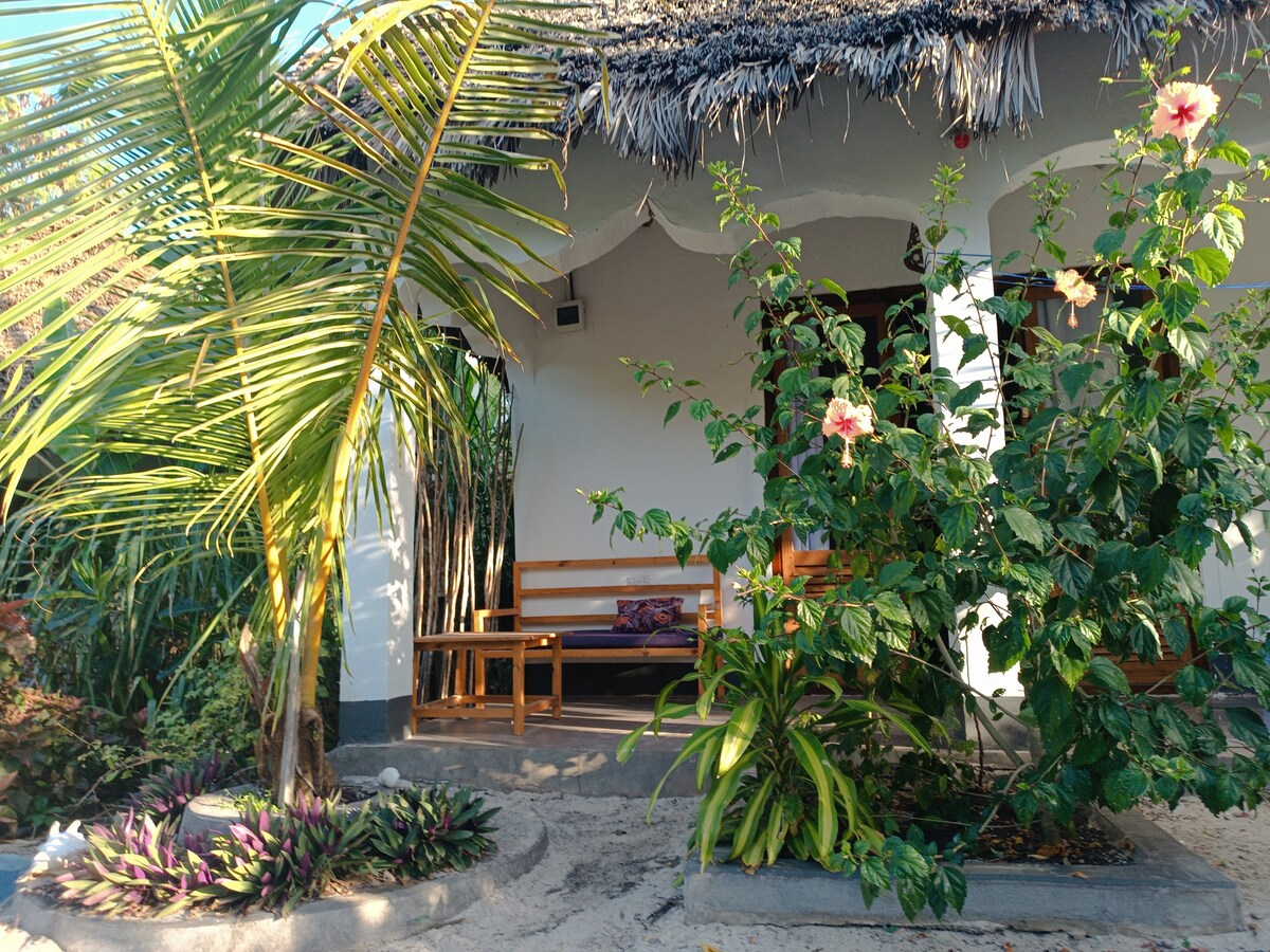 這間舒適的小客用住房與Nali別墅位於同一處,是私人的,包括一張雙人床、浴室和一個較小的烹飪區域。 客房位於Jambiani的正宗海灘邊村莊(步行1-2分鐘即可抵達海灘),四周環繞著大自然、當地和外籍人士的家園,以及一些正在建造的房屋。 酒店、餐廳和商店都在步行距離內,而當地交通工具的主要道路就在Vila Nali的路上。