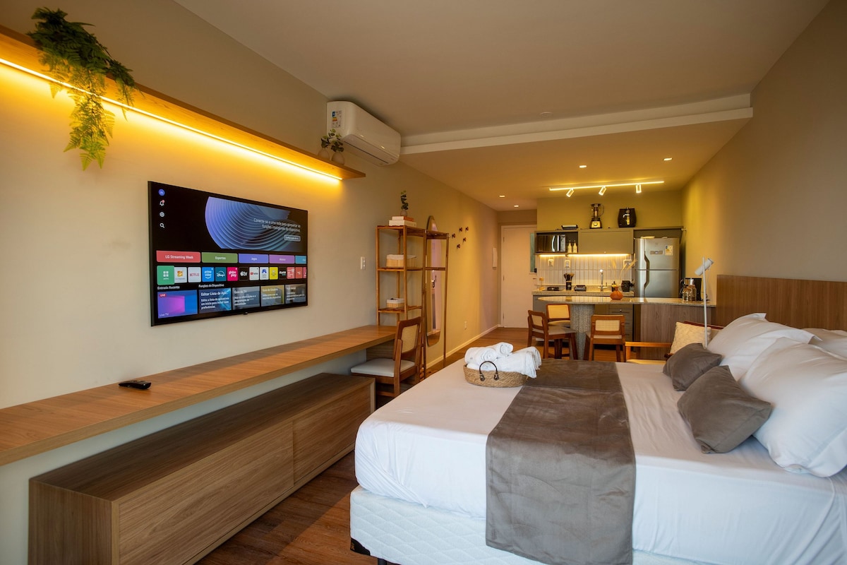 享受位於Armação海灘前面的現代化、舒適和裝潢精美的單間公寓。 房源配有雙人牀、設備齊全的廚房、高速Wi-Fi ,以及讓您感覺賓至如歸所需的一切。 這棟建築是全新、安全且充滿魅力的,擁有現代建築、精心設計的空間和藝術氛圍,給人留下良好的第一印象。 非常適合情侶、朋友或商務差旅人士入住。 來體驗舒適方便的薩爾瓦多吧。