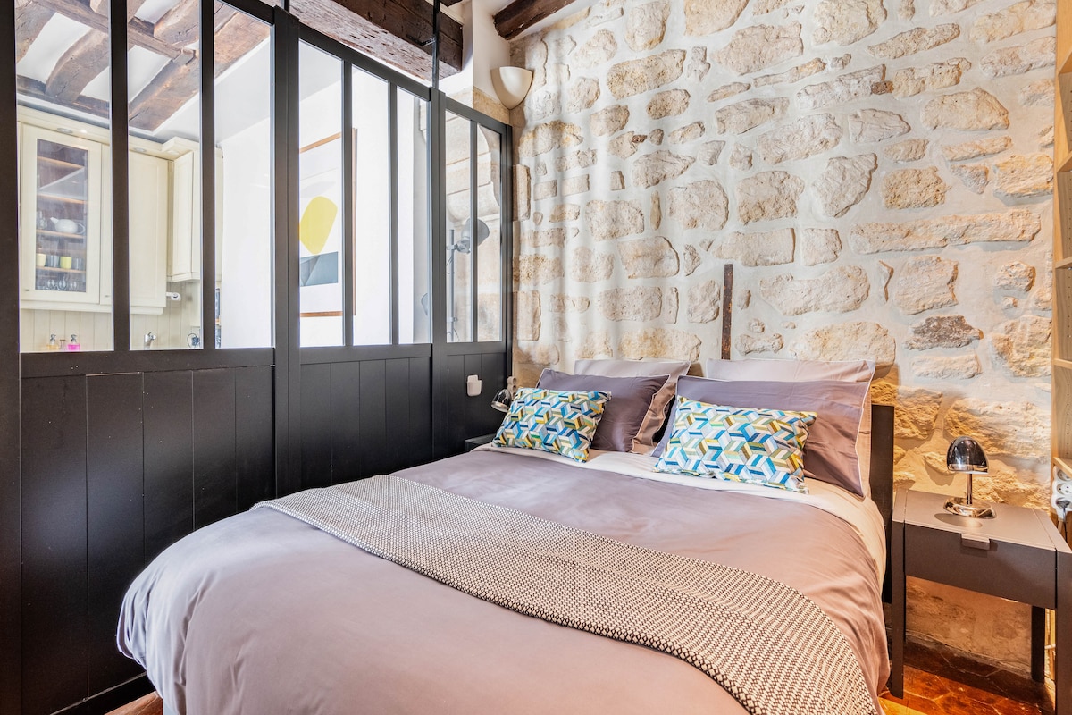 在聖日耳曼德佩斯教堂後面的一條小街上,在一棟建於1650年建造的房子裡,一個舒適的兩間臥室空間正在等著您。 一張床寬180公分,另一張寬160公分。兩間廁所,一間浴室,配有超大淋浴間。 我精心翻新和翻新了這個歷史悠久的地方。這裡很安靜,很迷人,有舊石頭和木樑。 就在附近:商店、餐廳、爵士音樂家、傳奇咖啡廳和著名地址。